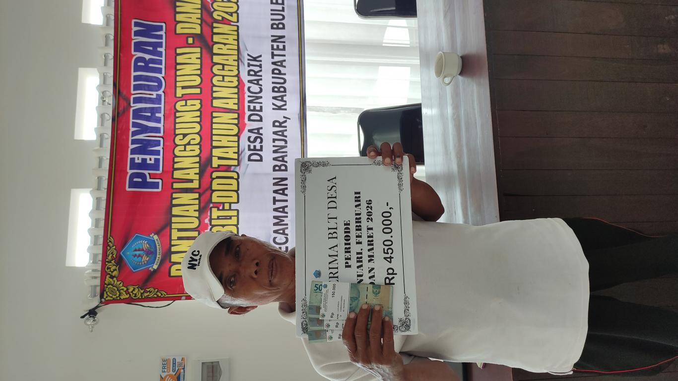 Kegiatan ini dihadiri oleh Perbekel Desa beserta perangkat desa,Perwakilan dari Kantor Camat Banjar, BPD Desa Dencarik, serta masyarakat penerima manfaat. Dalam kegiatan tersebut, sebanyak 18 Keluarga Penerima Manfaat (KPM) menerima bantuan langsung tunai dengan nominal Rp150.000 per bulan untuk Periode Januari- Maret 2026 sesuai dengan ketentuan yang berlaku. Dari jumlah penerima Manfaat tersebut ada beberapa yang tidak bisa menerima bantuan langsung ke Kantor dikarenakan kondisi sakit sehingga harus dilakukan penyaluran ke rumah penerima langsung.